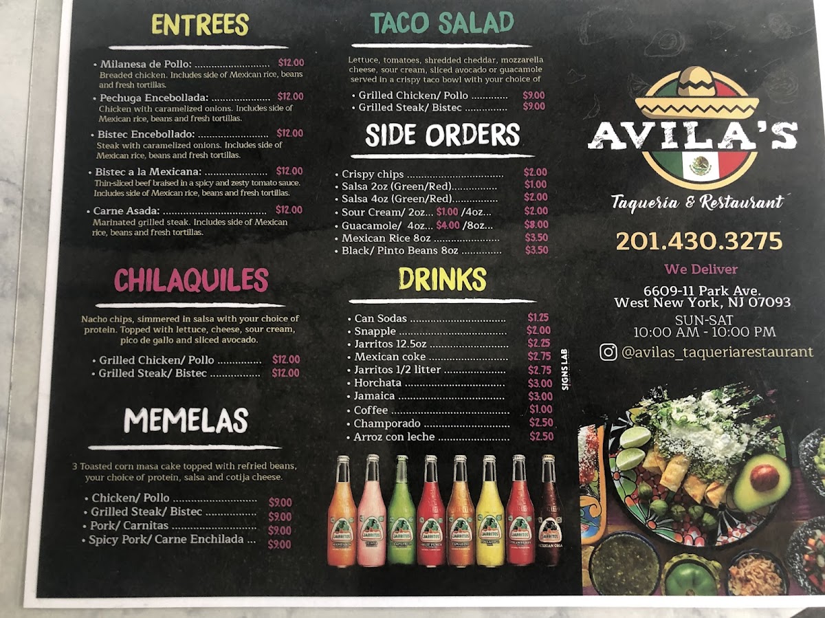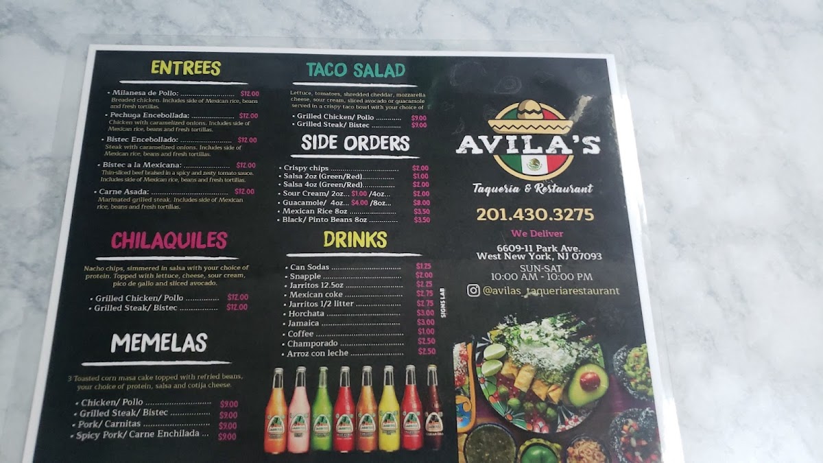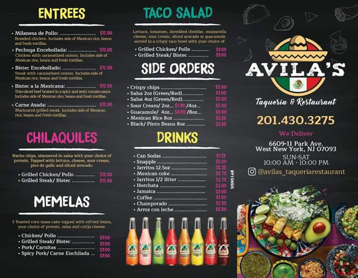 Welcome to Avila’s Taqueria & Restaurant, a hidden gem located on Park Avenue in West New York, NJ. This cozy eatery is your go-to destination for authentic Mexican cuisine, offering a menu brimming with mouthwatering selections. Whether you're craving tacos, burritos, or entrees like the flavorful carnitas or pollo frito, you'll find that every dish bursts with tradition and taste.